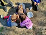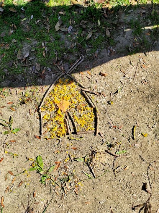 Mardi, les élèves de GS et CP de l'école du Sacré Cœur de Villevêque et de l'école Julie Bodinier de Soucelles se sont rencontrés. Ils se sont rendus au bord du Loir sur la rive de Villevêque. Par petits groupes, les enfants ont récolté des matériaux naturels (bois, feuille, herbe, sable, cailloux...) dans l'environnement afin de réaliser une œuvre éphémère. Ils ont du faire équipe, partager leurs idées, coopérer tout en faisant connaissance. Ils ont pu libérer leur créativité. Les œuvres ainsi réalisées ont pu être présentées à tous. Cette expérience de création et d'ouverture aux autres en appelle d'autres car elle a été très appréciée des enfants.