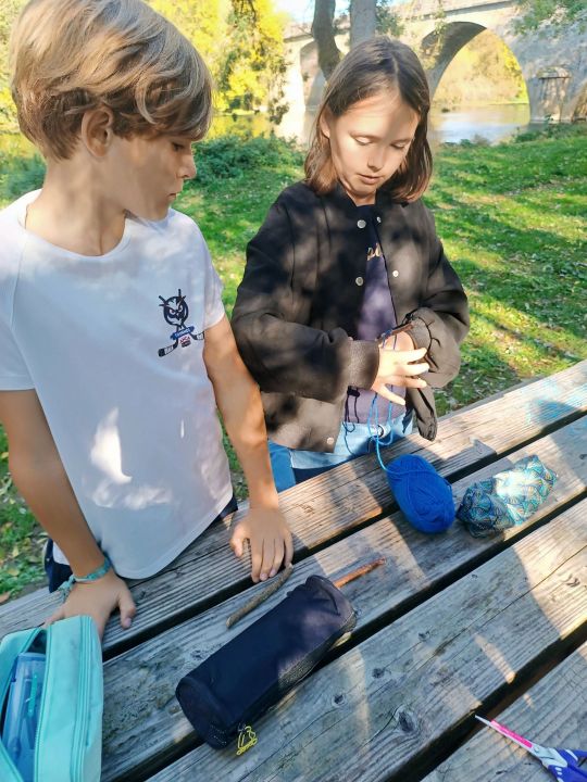 L’activité a aussi été l’occasion de profiter du beau temps dans la prairie de l’école et près du Loir.